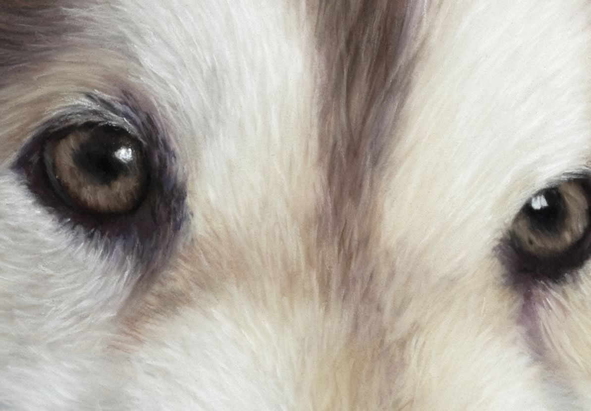 Every portrait has its own unique challenges. Malik is no exception. The fur colour has hints of violet and purple and trying to achieve the same tone from layering the pastels was quite challenging.
